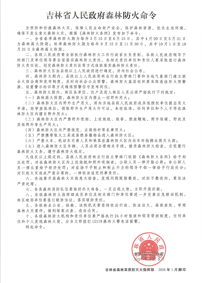 吉林省人民政府森林防火命令